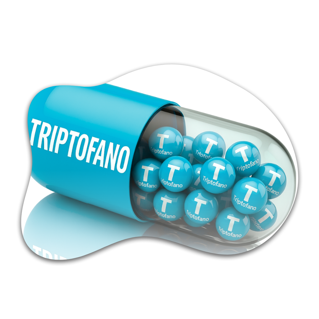 O triptofano é um aminoácido essencial que ajuda na produção de serotonina, o neurotransmissor responsável pela sensação de bem-estar. Ele contribui para o controle da ansiedade, melhora do humor e qualidade do sono.