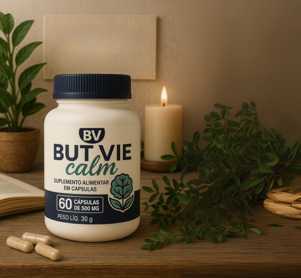 BUT VIE Calm deve ser tomado diariamente, 2 cápsulas por dia, preferencialmente antes das refeições.